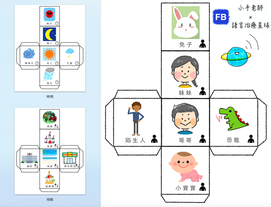 並提供空白模板,可以貼/畫/寫上內容,做成屬於自己的故事骰!